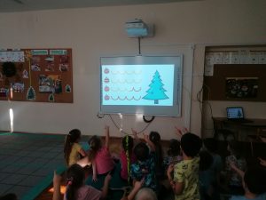 Dzieci rysowały palcami wzorki w rytm świątecznych melodii, a każdy gest dodawał drzewku nowy błyszczący akcent! 🎄🤩 Prawdziwa świąteczna magia zagościła na dobre w naszej sali!