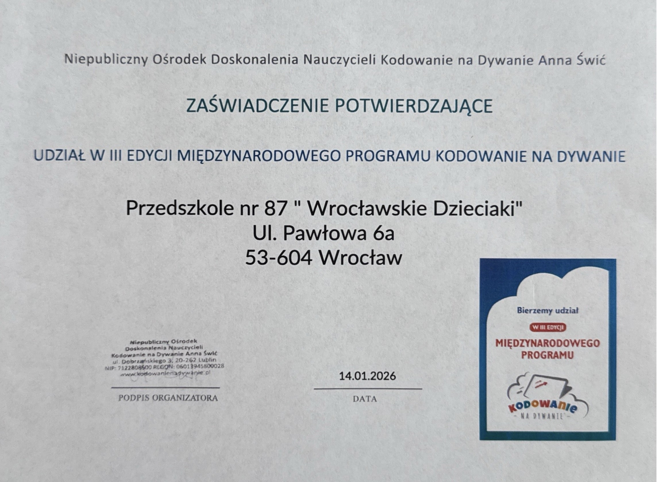 Zakup został w całości zrealizowany przez placówkę.