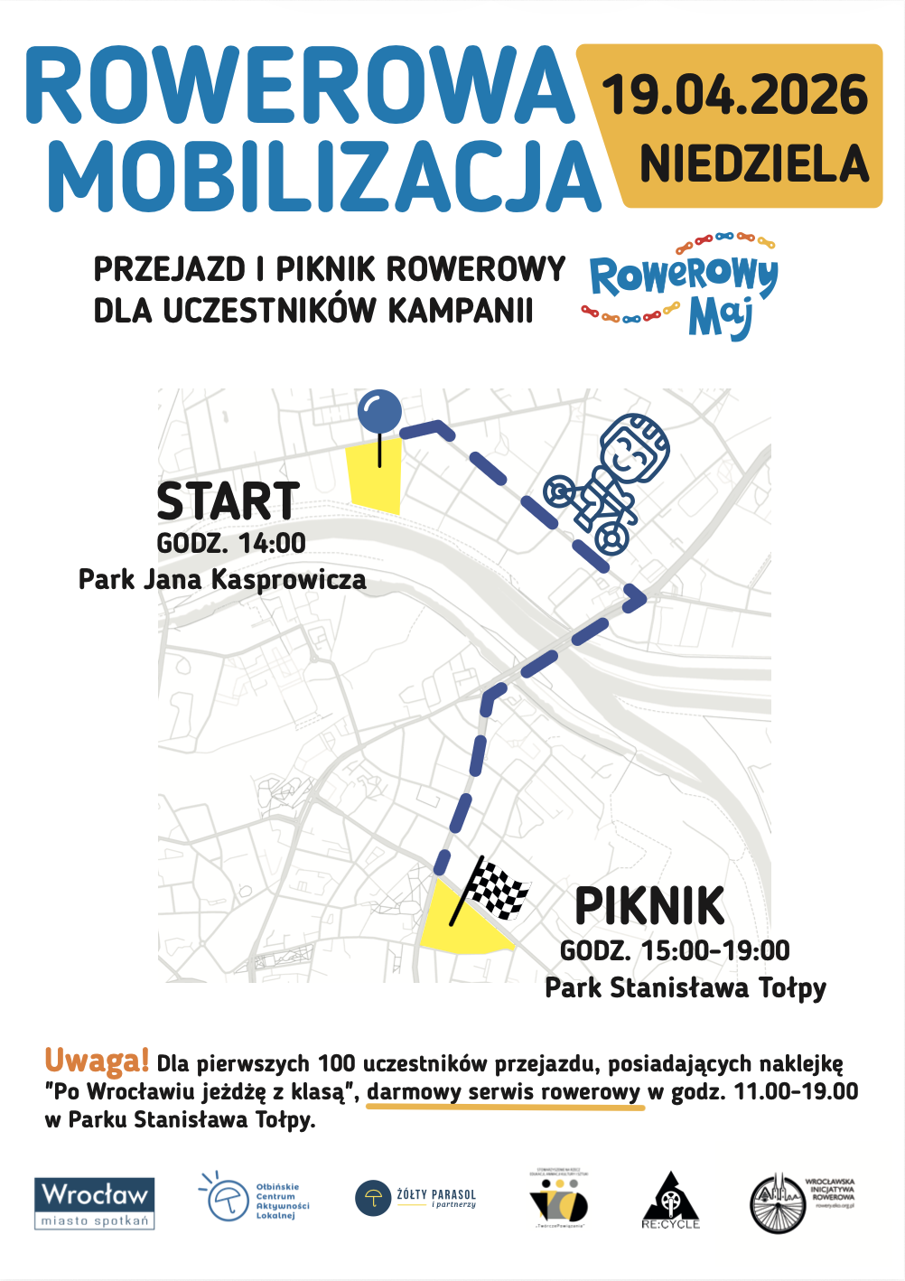 - godz. 14.00-15.00 - przejazd rowerowy - zbiórka: Park Kasprowicza